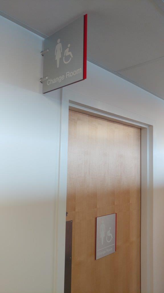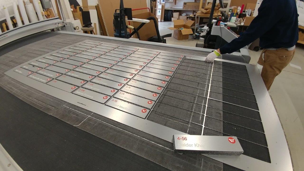 Lastly, there were a few smaller pieces of signage needed in the form of wayfinding such as the room IDs and locker numbers. These were produced using multiple elements like Aluminum Composite Panels, write-erase vinyl, printed vinyl, tactile lettering, and brailling.