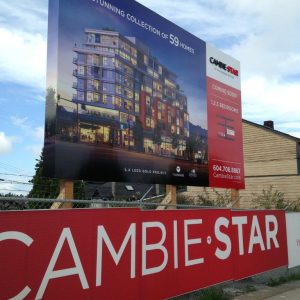 Stand out with over-sized site signage, building wraps, fence signs, billboards, under construction banners, safety signage and hoardings. Incorporate elements such as 3D lettering. LED lighting, and colored vinyl to add impact to your message. When it comes to constructions signs, we cover the entire gamut – from pre-construction phase to post-construction. Communicate on a large scale with our full service production capabilities for all your residential or commercial development signage.